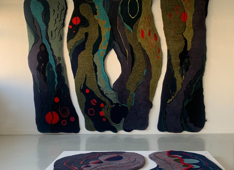 I made my first rug over 30 years ago. It has moved house with me several times and is still on my living room floor looking great. I aspire to evoke energy and movement in my work, using gestural lines, colour and variety of pile heights. Taking inspiration from the natural world, my garden and reflections in water.