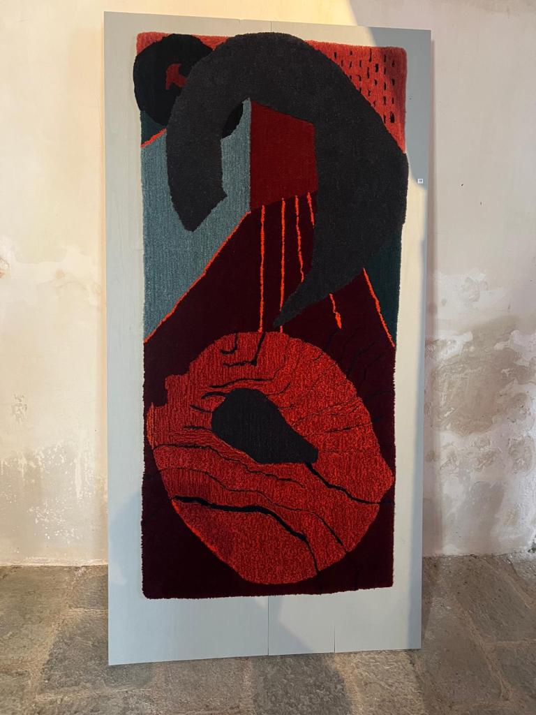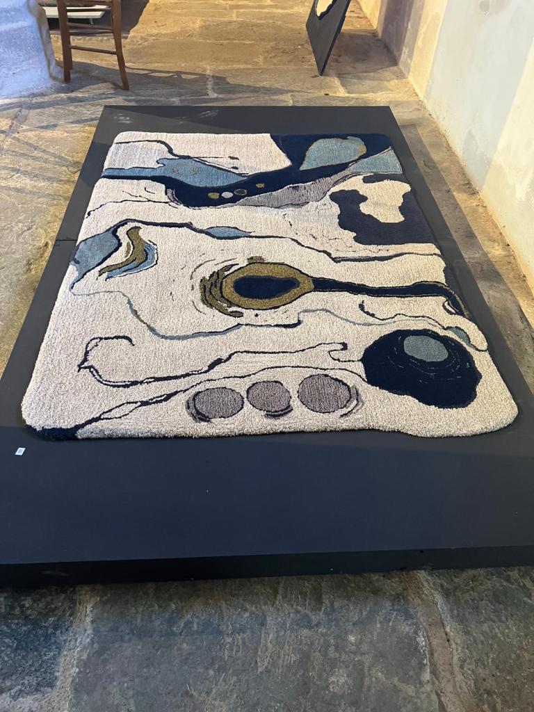 This method of rug making allows great flexibility of form and shape. The variation in pile height between 12mm and 45mm can add a sculptural dimension and, by using different threads from silk and Isla wool to thicker wools, a wider variety of lines, marks and textures can be acheived.