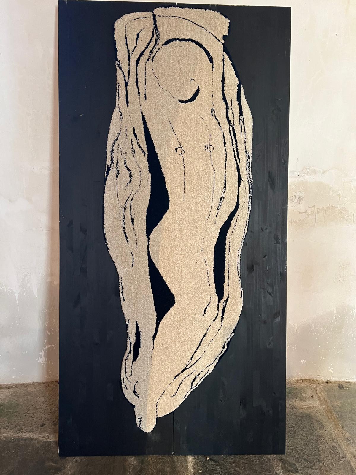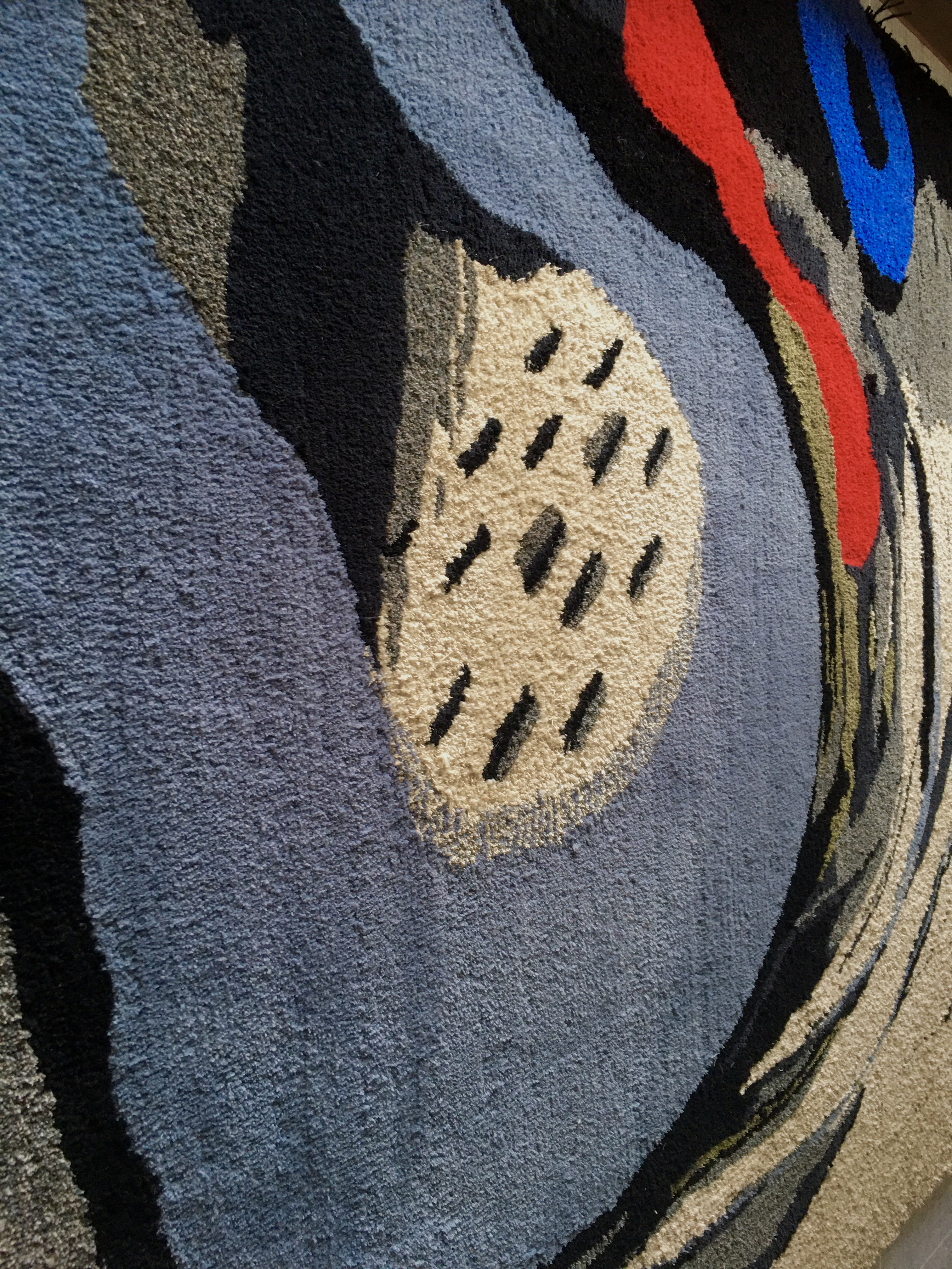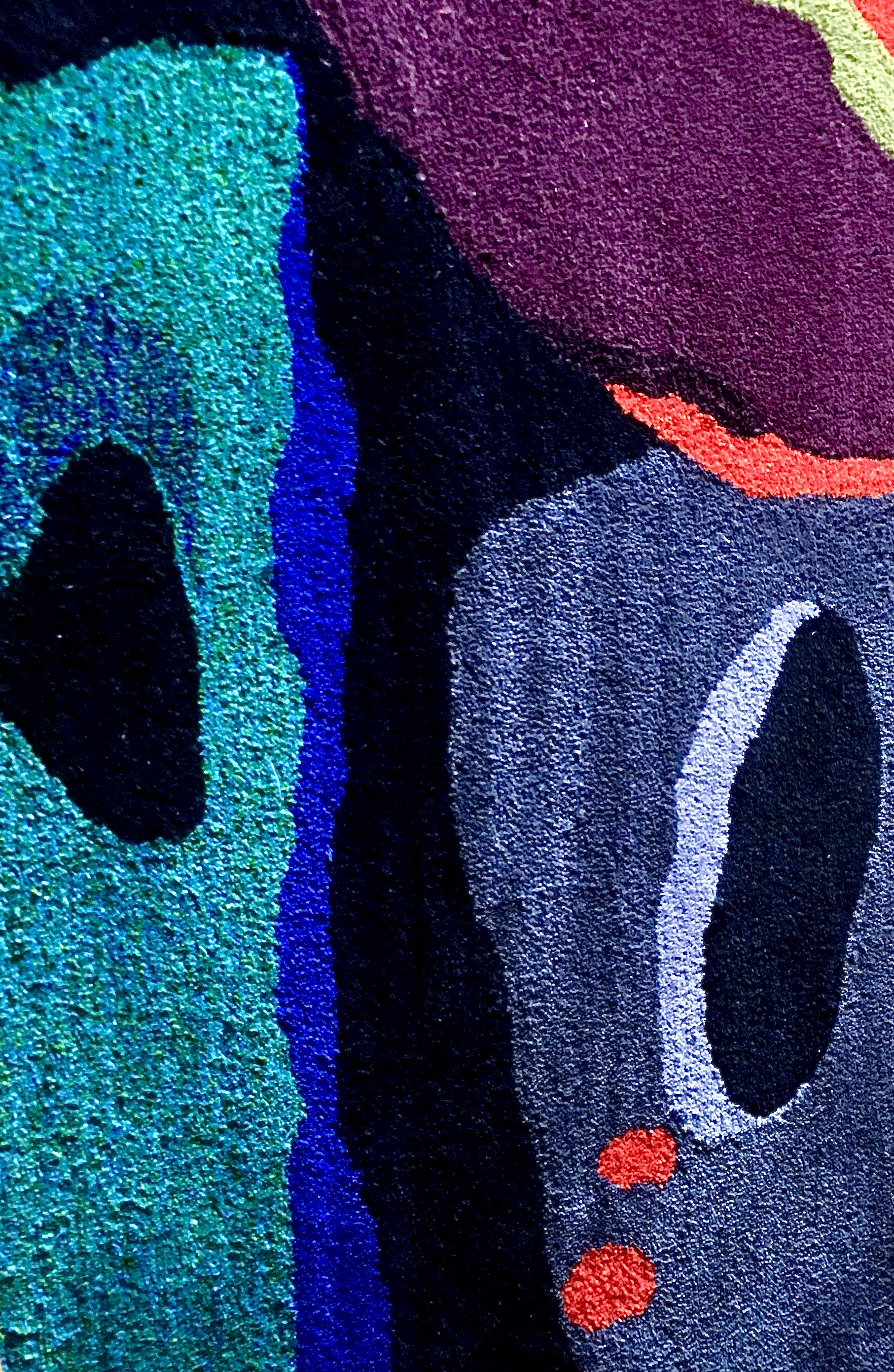 This method of rug making allows great flexibility of form and shape. The variation in pile height between 12mm and 45mm can add a sculptural dimension and, by using different threads from silk and Isla wool to thicker wools, a wider variety of lines, marks and textures can be acheived.